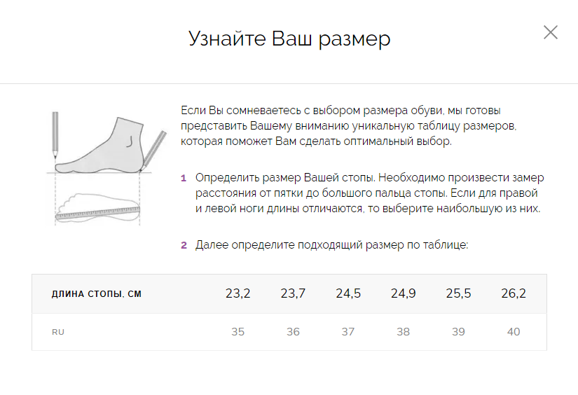 ТАБЛИЦА РАЗМЕРОВ